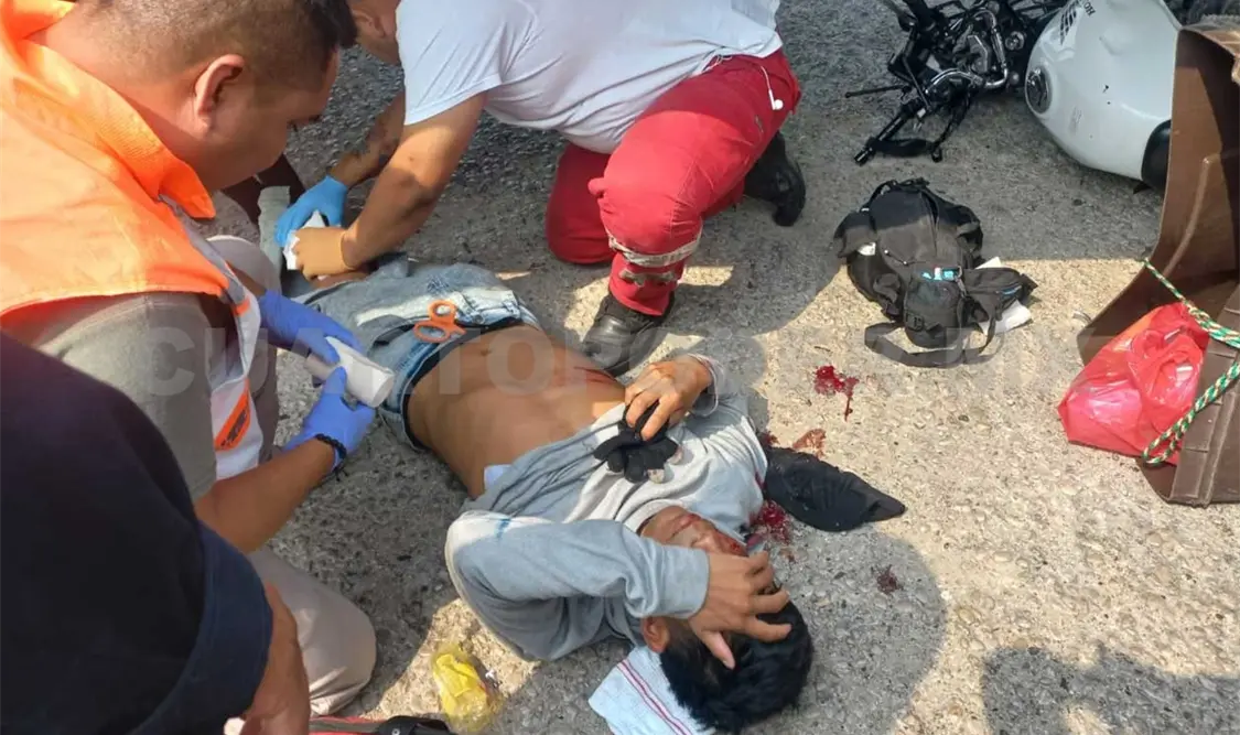 Por su parte, paramédicos de la Cruz Roja Mexicana y de Protección Civil Municipal le brindaron la atención prehospitalaria al motorista en desgracia.