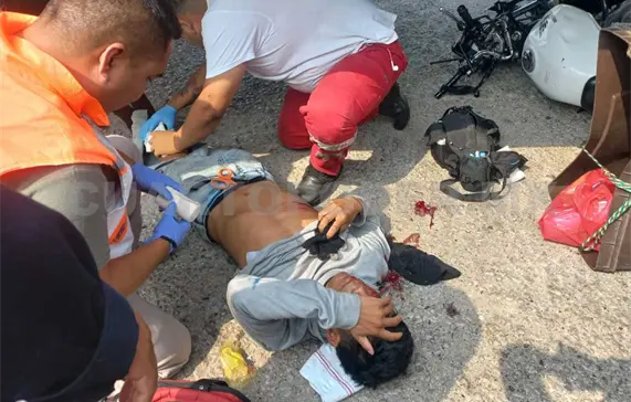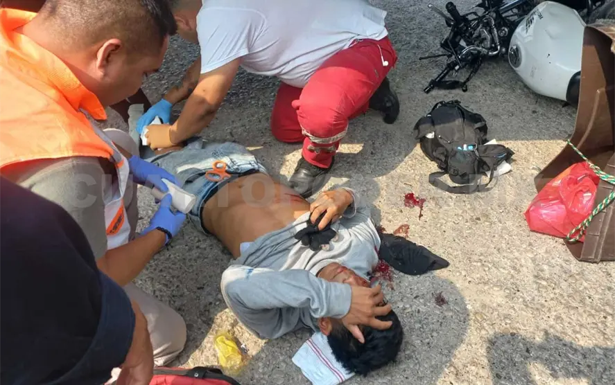Durante la valoración se informó que el masculino presentaba una lesión grave en la cabeza, fracturas en ambas piernas y el colapso del pulmón del lado derecho.