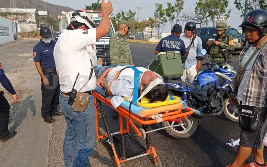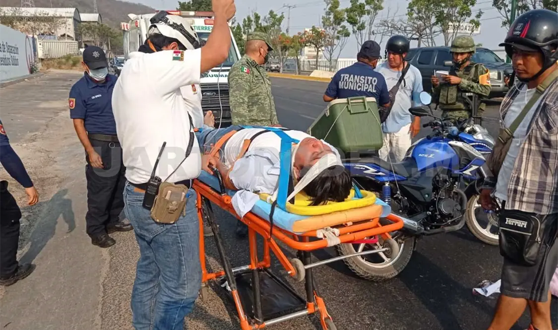 Al salir proyectado el joven motociclista del asiento de su unidad, quedó tendido sobre la cinta rodante y con una probable fractura en uno de sus brazos.