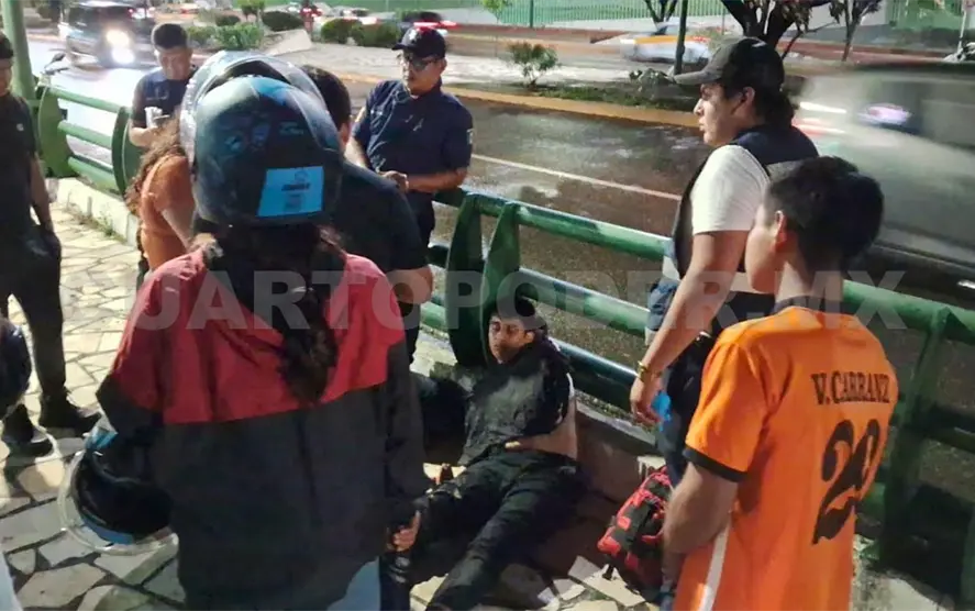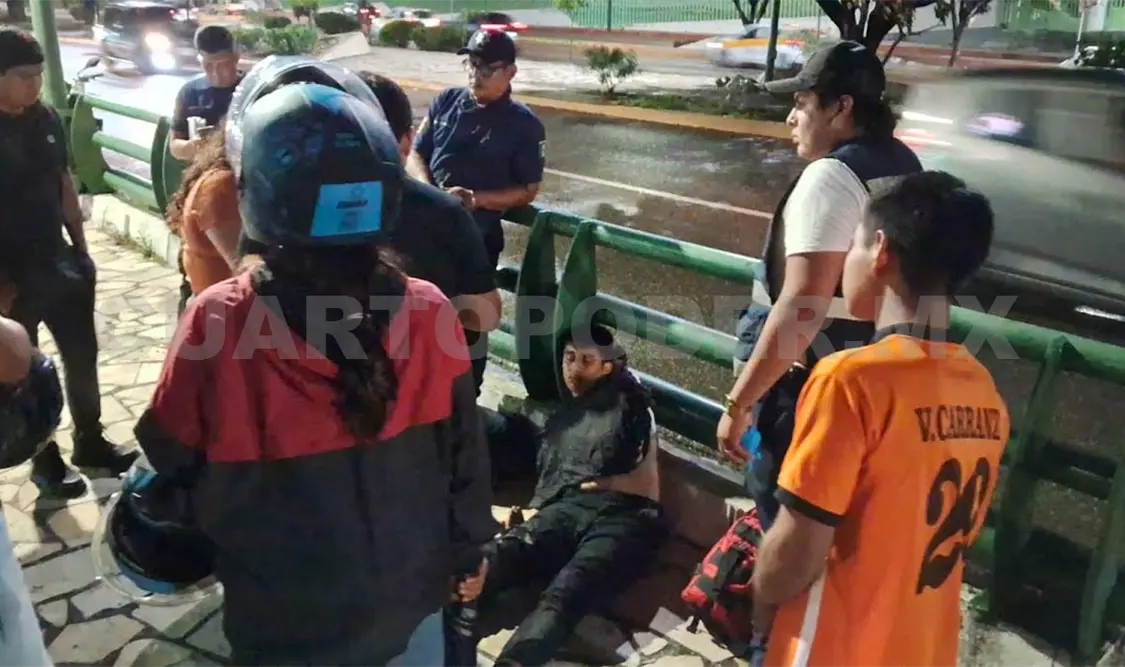 Sin embargo, al acercarse a la zona universitaria, un vehículo le cerró el paso abruptamente, lo que obligó al joven conductor a intentar cambiarse al carril de baja velocidad. Por esta maniobra, perdió el control de su motocicleta, impactándose violentamente contra el camellón central y saliendo proyectado hacia el pavimento.