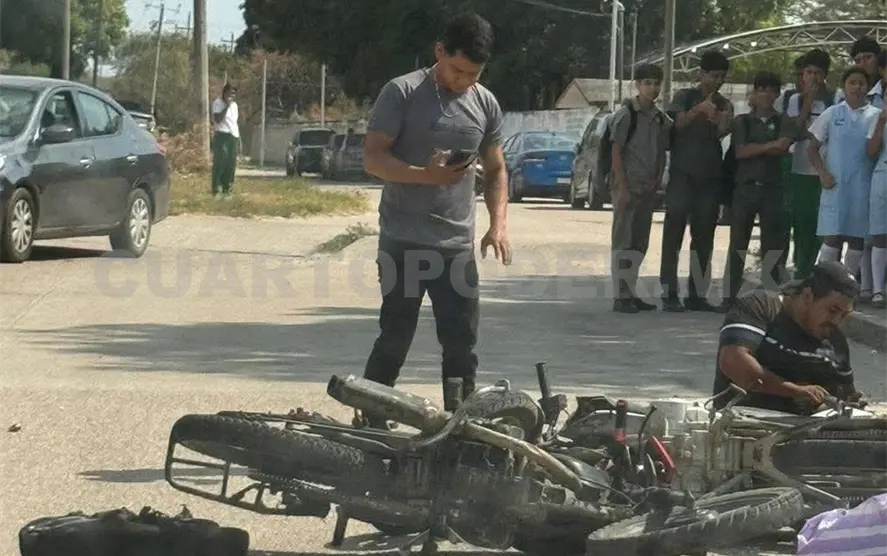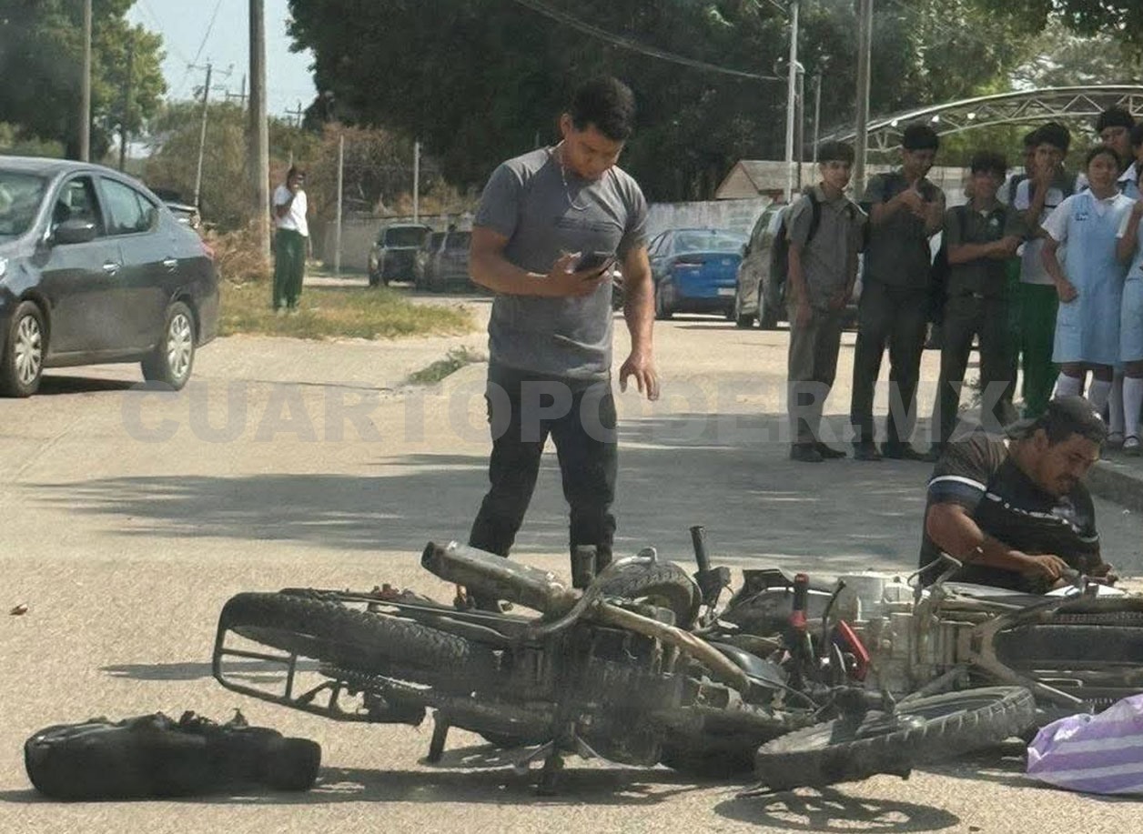 El percance ocurrió alrededor del mediodía, cuando ambas unidades de dos ruedas colisionaron de frente sobre la vialidad que se ubica frente a las instalaciones del plantel educativo.