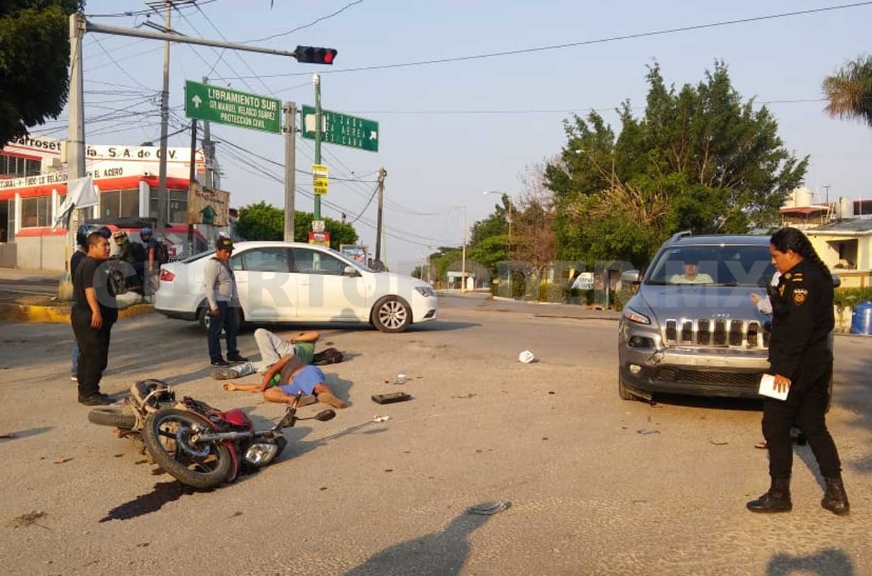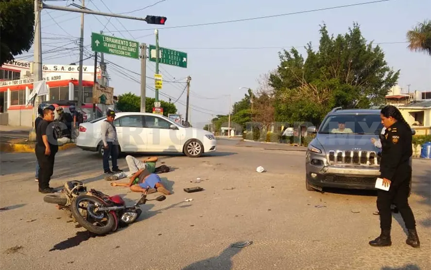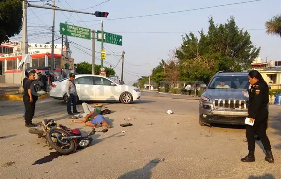 Una pareja de motociclistas resultó severamente lesionada luego de ser embestidos por una lujosa unidad la mañana del jueves en la zona sur poniente de Tuxtla Gutiérrez. Paramédicos trasladaron a un hospital a las víctimas.
