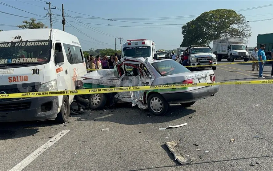 Tras el fuerte impacto el taxi acabó chocando contra una combi del servicio público de la ruta Tapachula-Puerto Madero, con número económico 10, que se encontraba detenida bajando pasajeros, aunque afortunadamente no hubo personas lesionadas.