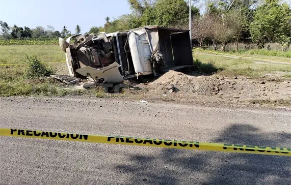 La volcadura de un camión de volteo en el tramo entre la población de Mazatán y el cantón Cuatro Caminos, dejó como saldo un muerto y daños materiales de alta consideración.