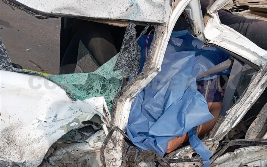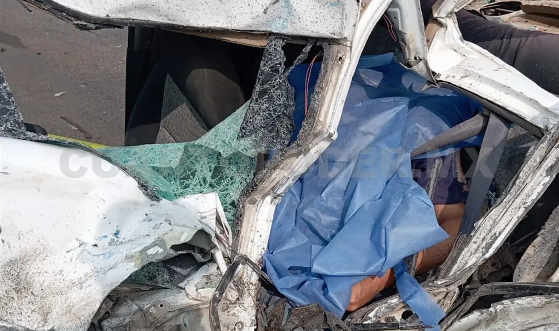 El personal de Protección Civil (PC) al arribar localizó entre los metales retorcidos, en el interior del sedán, a una persona del sexo masculino que —según sus documentos— respondía al nombre de Alfonso “N” (42 años). Al parecer laboraba en la empresa Adeca, por los logos que portaba su camisa.
