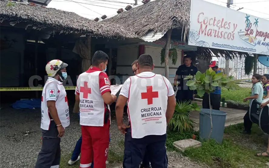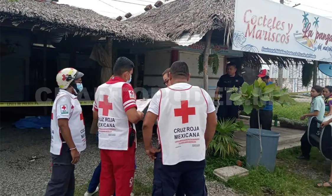 Una persona que realizaba trabajos de mantenimiento en la palapa “La Panga del Mareño”, frente a la Fiscalía de Distrito Fronterizo, falleció presuntamente de un paro respiratorio en Tapachula. Autoridades se presentaron para tomar conocimiento de los hechos.