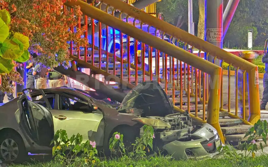 Finalmente, la unidad quiso tomar la rotonda del Reloj Floral velozmente y esto hizo que se saliera del camino estrellándose contra las escaleras del puente peatonal.