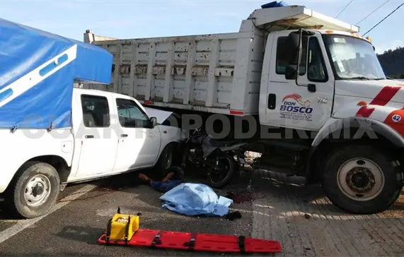 Los vehículos chocados son un camión marca International tipo volteo de color blanco de la empresa Don Bosco, con placas AB-29-430 y una camioneta Nissan doble cabina de color blanco de la Sociedad Cooperativa Santo Tomás del municipio de Oxchuc con placas 9-CNB-373, así como una motocicleta marca Italika 150 de color gris con negro con placas CDX62, conducida por Miguel Álvaro Cruz, de 39 años, originario de la comunidad Betel del municipio de Teopisca, quien debido a las delicadas lesiones que presentó perdió la vida de manera instantánea en el lugar.