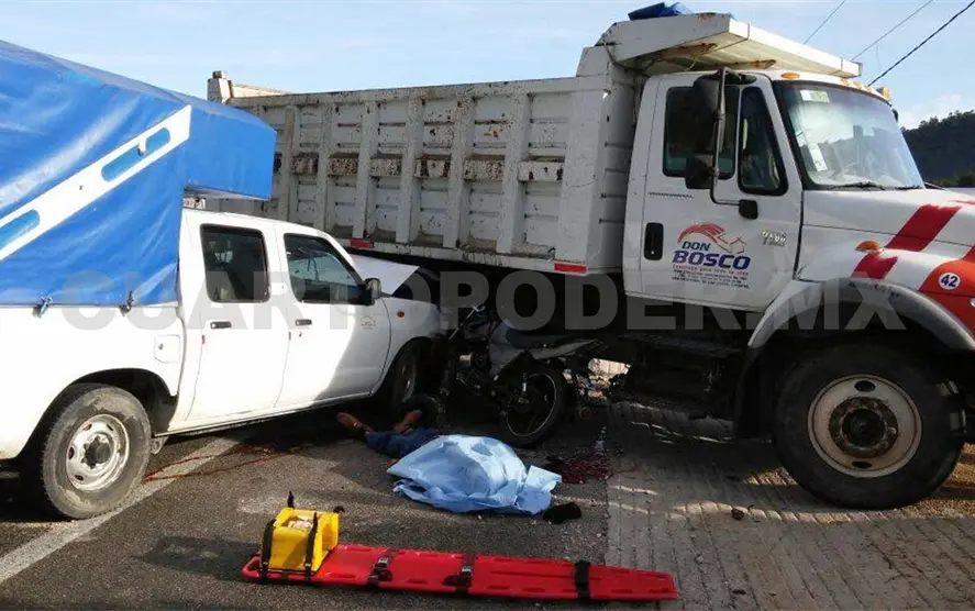 Miguel Álvaro Cruz, de 39 años, originario de la comunidad Betel del municipio de Teopisca, quién conducía su motocicleta marca Italika, de color gris con negro con placas CDX62, perdió la vida en el lugar de los hechos al impactarse contra los dos vehículos colisionados.