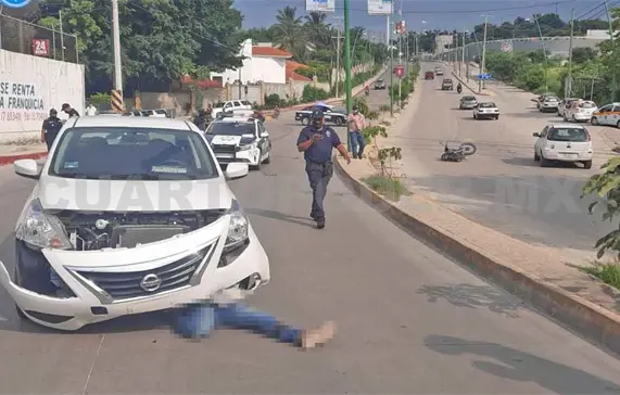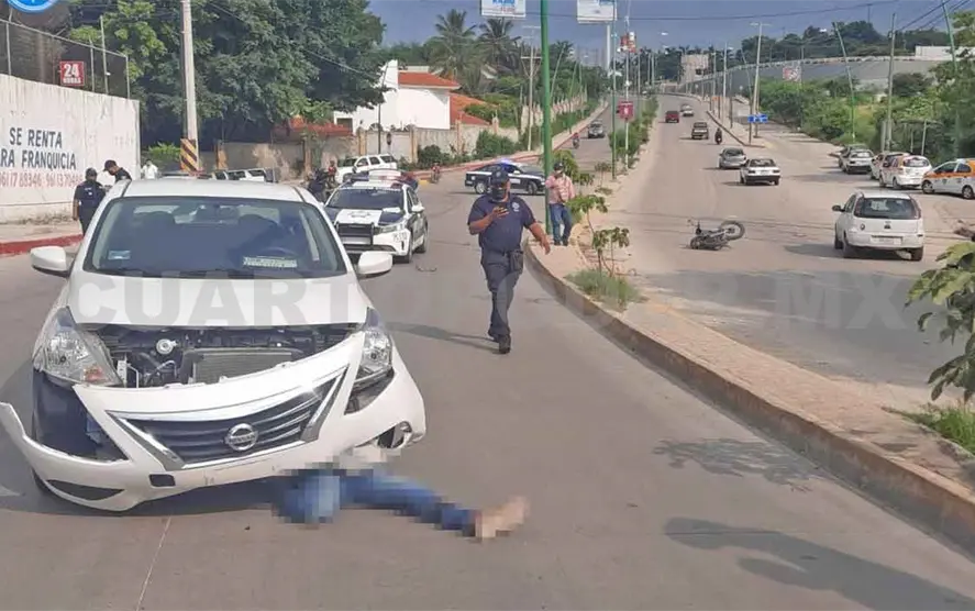 Finalmente, la persona quedó debajo de un vehículo Nissan, tipo Versa, en color blanco, con placas de circulación DMK 325-C de Chiapas y maniobrado por Renán Gamboa Martínez.