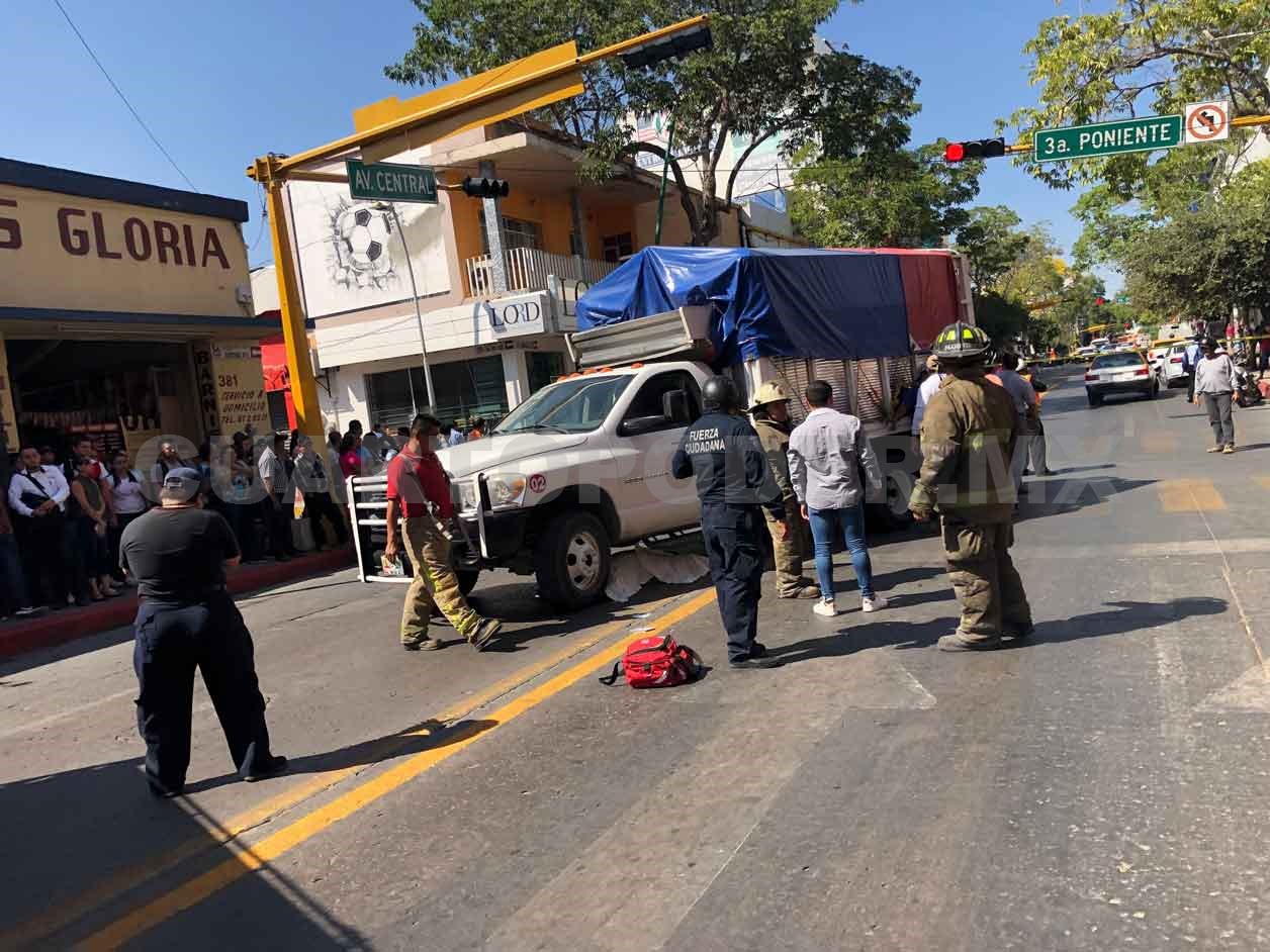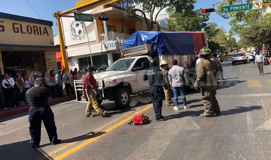 El accidente se registró cerca de las 11:00 horas cuando Adriana “N” pretendía cruzar la avenida Central de norte a sur, al mismo instante en que un camión de tres toneladas que circulaba sobre la 3ª calle Poniente giró en dirección al oriente.