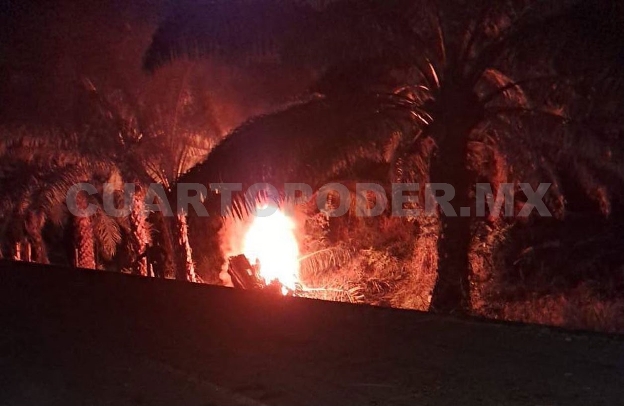 Dos personas perdieron la vida calcinadas al incendiarse la camioneta en que se desplazaban, luego de salirse de la carretera e impactarse contra una palmera en la zona baja del municipio de Acapetahua.