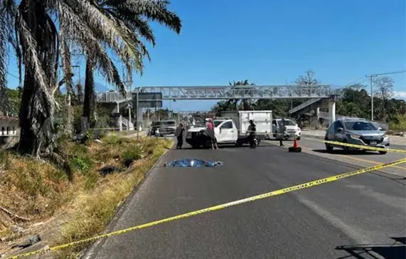 Una persona perdió la vida al ser atropellada por un vehículo que se dio a la fuga sobre la carretera que va de Tapachula a Puerto Madero. Personal de Servicios Periciales se presentó para tomar conocimiento.