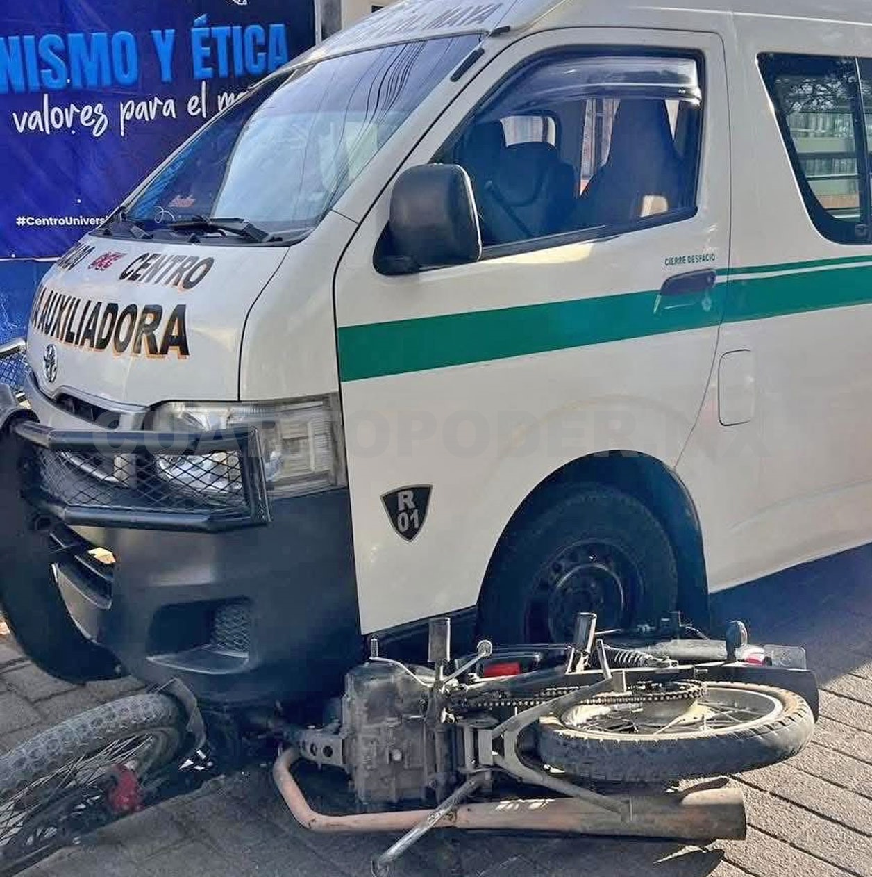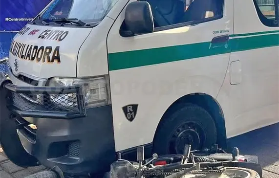 Segundos más tarde, una combi de la ruta local avanzó por el carril sin lograr frenar a tiempo, pasando por encima del motorista.