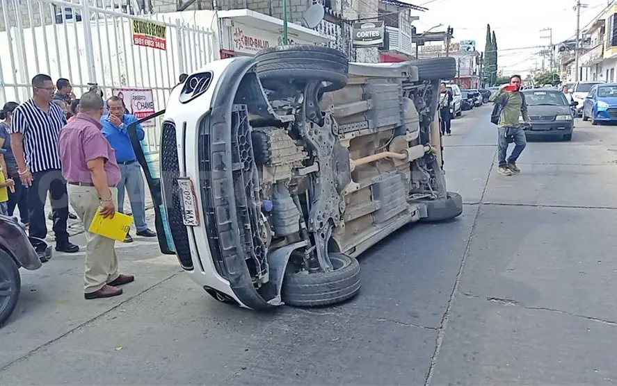 En la unidad volcada, marca Kia, tipo Sportage y con patentes de circulación de Chiapas, los ocupantes quedaron atrapados.