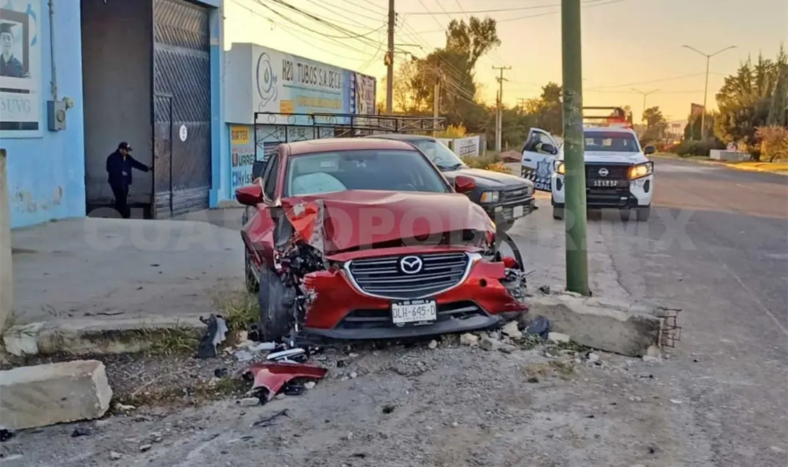 De acuerdo a testigos, una mujer manejaba un automóvil Mazda de color guinda, rumbo al norte; sin embargo, debido al estado inconveniente con el que manejaba, perdió el control del volante y se salió de la vía, por lo cual colisionó y derribó dos pilares de concreto.