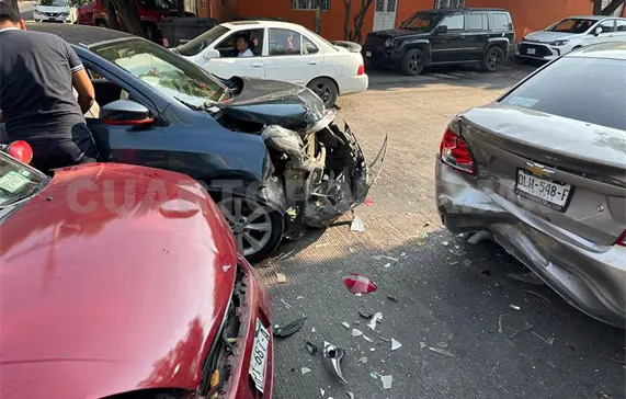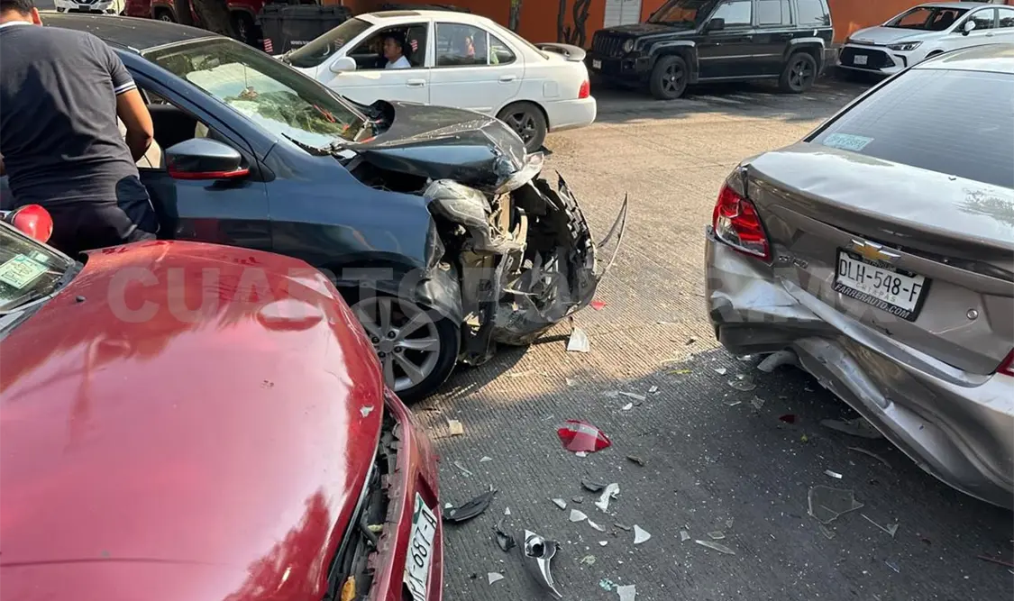 Severas averías fue lo que dejó una carambola de tres vehículos sobre la 9.ª Norte y 2.ª Poniente del barrio Niño de Atocha, localizado en Tuxtla Gutiérrez.