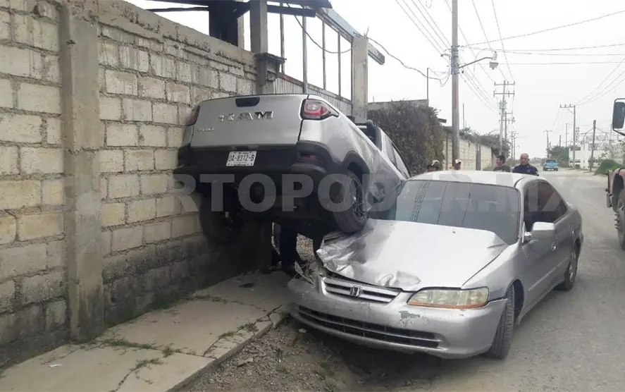 Fue por ello que terminó impactando contra una camioneta Dodge Ram, color gris, con placas DA-8312-B del estado de Chiapas, que se encontraba estacionada, y que del impacto ésta terminó encaramada sobre otra unidad automotriz.