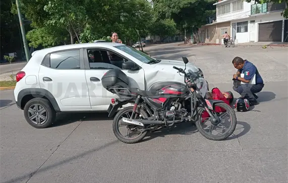 Un joven motociclista luego de ser impactado por un automovilista sobre la prolongación de la 5.ª Norte frente al paseo de Los Hombres Ilustres de la colonia Madero, en la capital Tuxtla Gutiérrez, resultó con múltiples lesiones en las extremidades.