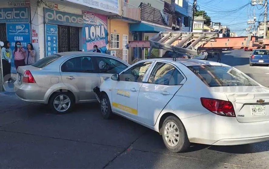 No se reportaron personas lesionadas, únicamente daños materiales valuados en miles de pesos. El impacto fue en uno de los costados del automóvil beige.