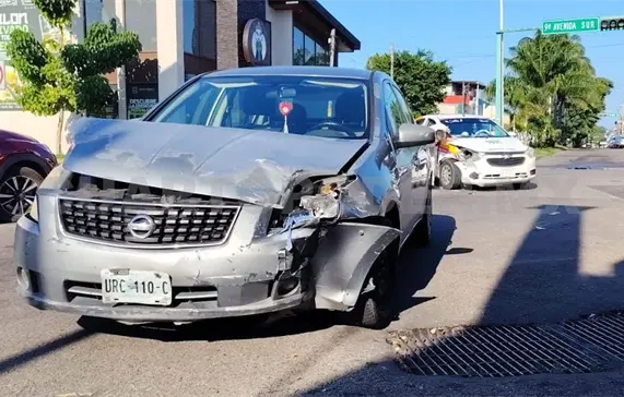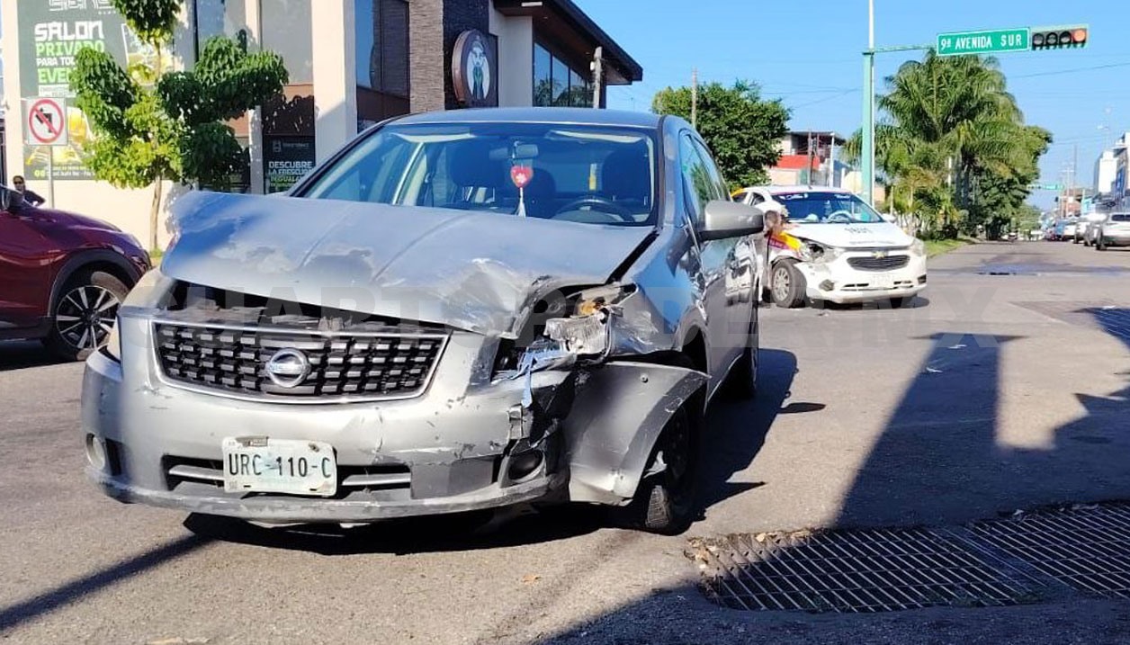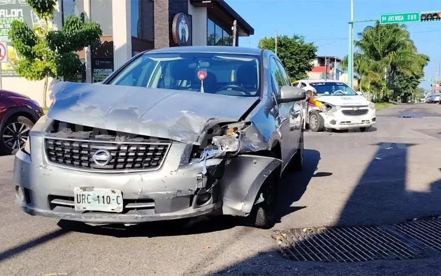 Fue en la esquina de la 9.ª avenida Sur y 2.ª calle Oriente, en el centro de la ciudad, en donde ocurrió el percance en el que se vieron involucrados un taxi con número económico 1631 y un automóvil Nissan Sentra de color gris.