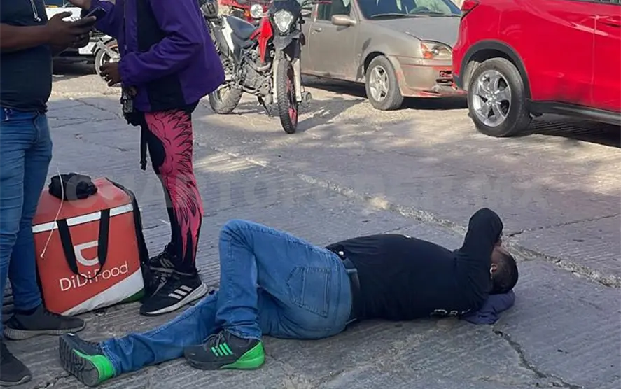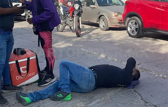 Un motociclista quedó tirado en medio de la calle, luego de ser noqueado de un puñetazo en la 19.ª Poniente y 4.ª Sur de la capital Tuxtla Gutiérrez, la tarde del lunes.