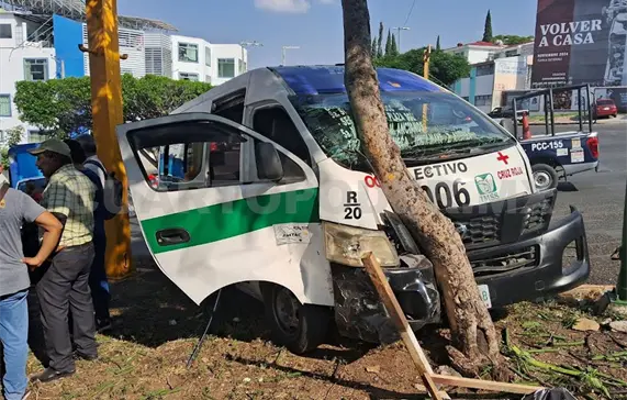 Del fuerte impacto, el colectivo salió proyectado contra un árbol y un señalamiento vial ubicado sobre el andén central.