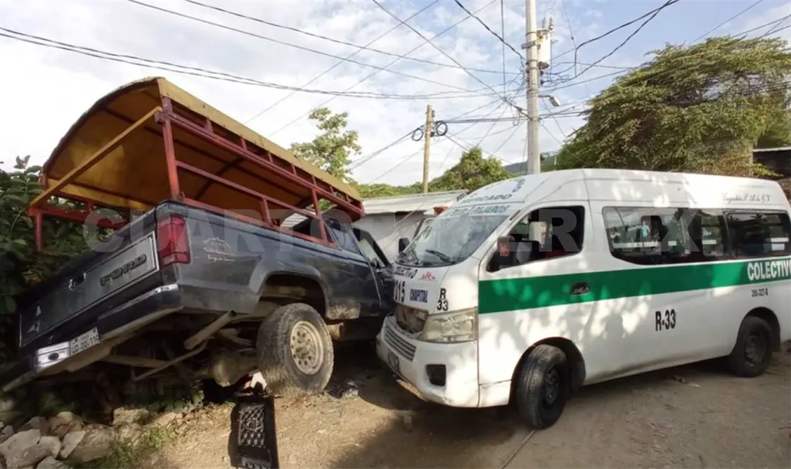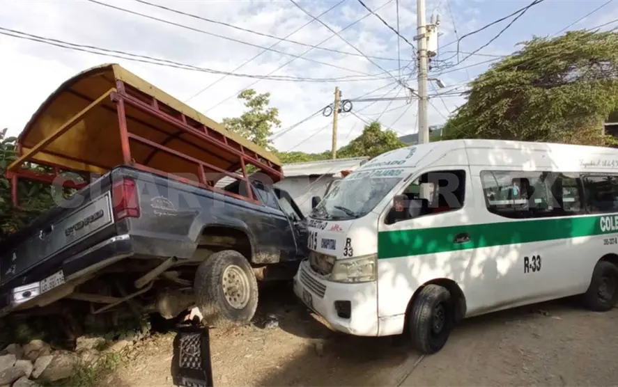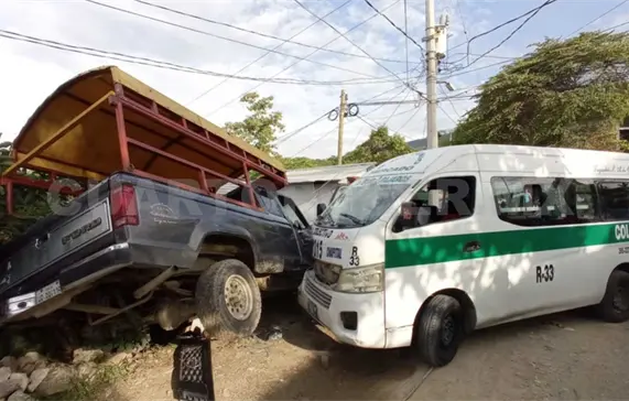 A su paso se encontraba una camioneta Ford aparcada, en la que la combi se estampó en la parte lateral, lo que evitó que la situación fuera crítica al ser frenada la loca carrera de la unidad de pasaje.