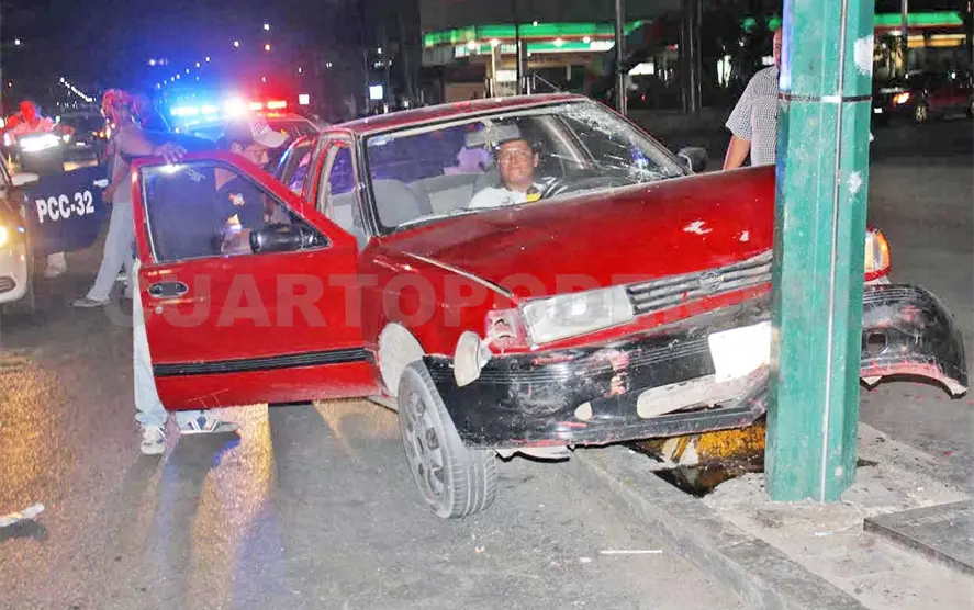 Un automóvil marca Nissan tipo Tsuru, de color rojo con placas de circulación DRL3060, manejado por Federico Méndez Díaz, de 34 años; se estrelló contra el poste del alumbrado público, donde se encontraba de pie una niña que vendía flores.
