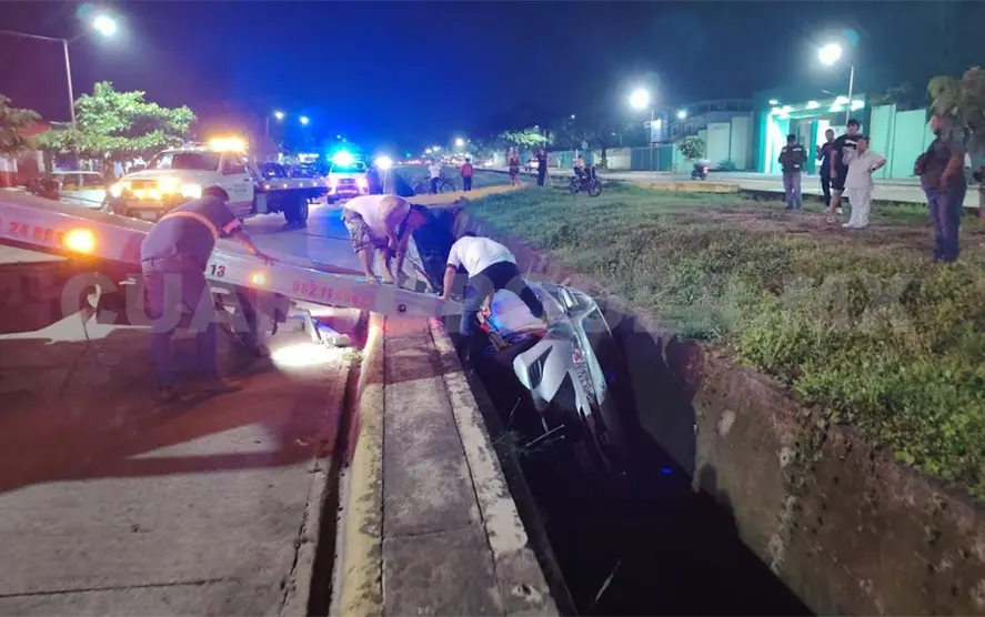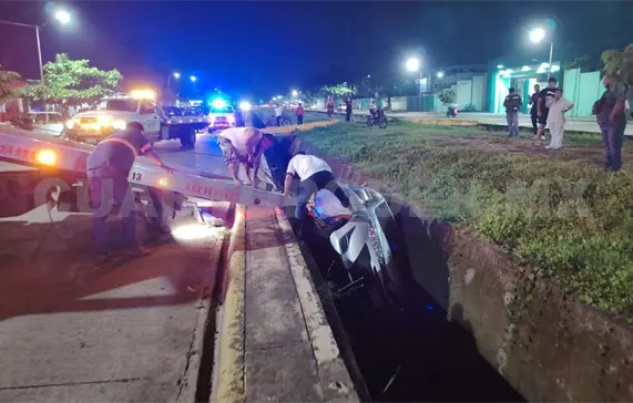 El exceso de velocidad y la falta de precaución al conducir han sido las causas principales de los accidentes ocurridos en el Par Vial de Tapachula, en donde en las últimas horas otro vehículo se salió de la cinta asfáltica y quedó en el interior del canal pluvial.
