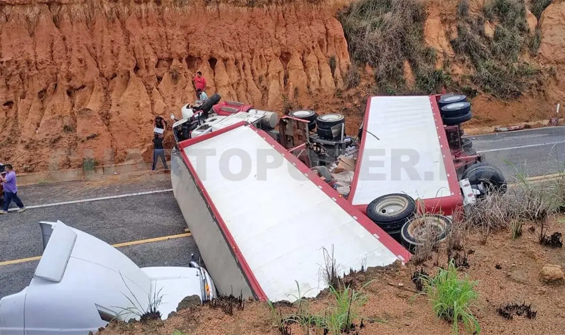 Dos tráileres colisionados, la vialidad interrumpida y varios miles de pesos en pérdidas materiales por la rapiña, fueron el saldo de un accidente la mañana del domingo en la vía de cuota del municipio de Jiquipilas. Todo parece indicar que la falta de precaución fue la causa.