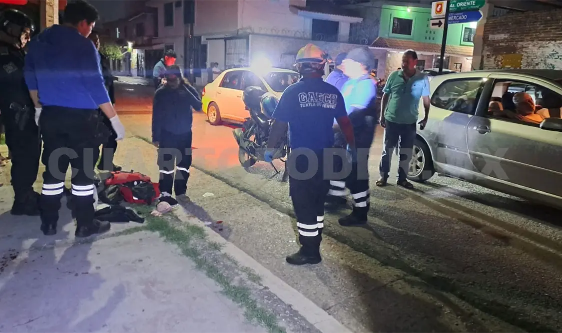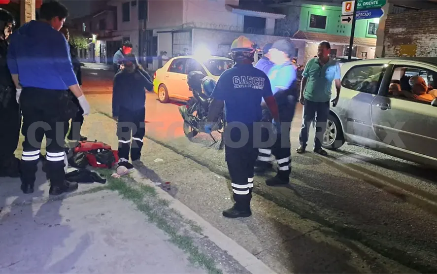 En el barrio La Pimienta, durante la noche del domingo en la capital Tuxtla Gutiérrez, un aparatoso accidente dejó como saldo a una persona herida de las extremidades y múltiples daños materiales.
