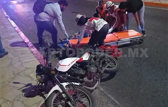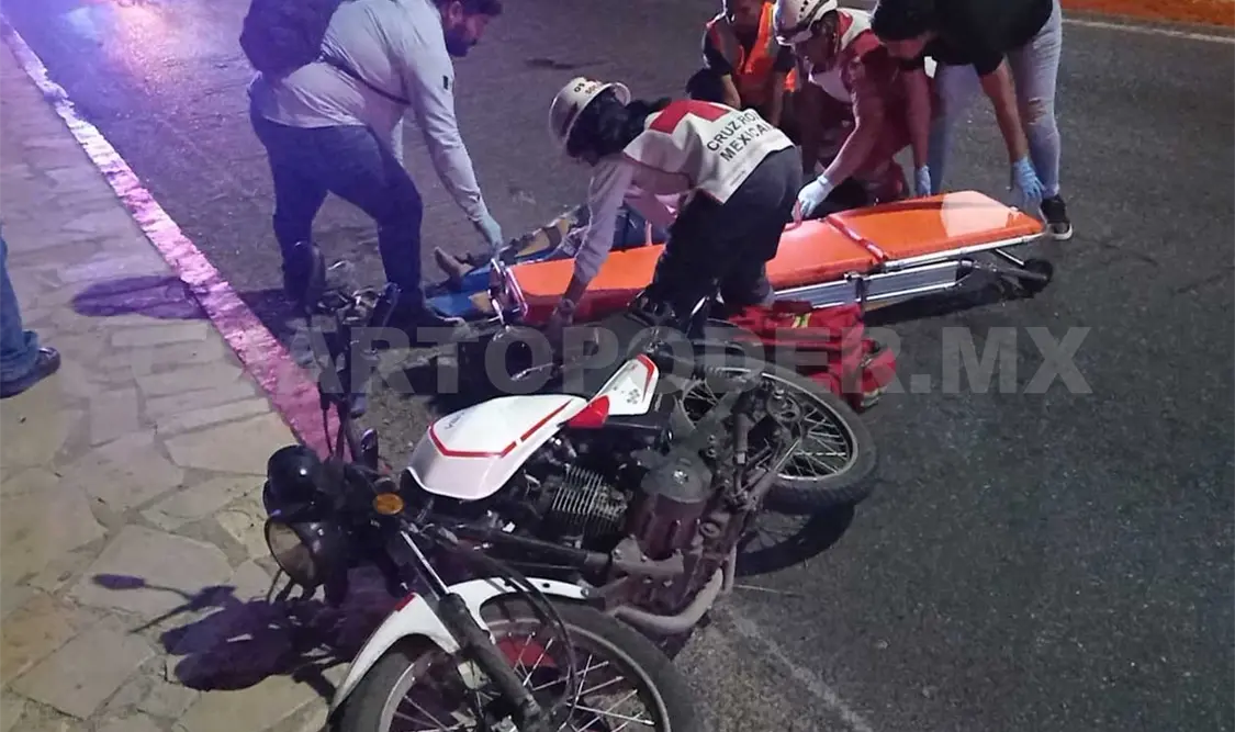 Con lesiones y probables fracturas terminaron dos personas luego de derrapar a bordo de una motocicleta sobre el libramiento Norte, a la altura del hotel Álamos, por lo que tuvieron que ser llevadas de urgencia a un hospital.
