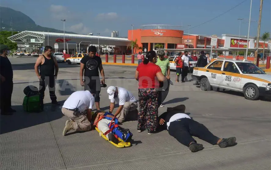 Pero al llegar al semáforo del bulevar, al parecer el taxista intentó ganar el paso, lo que provocó el fuerte impacto. El motociclista y la mujer que lo acompañaba, una jovencita de aproximadamente 20 años de edad, salieron expulsados al pavimento.