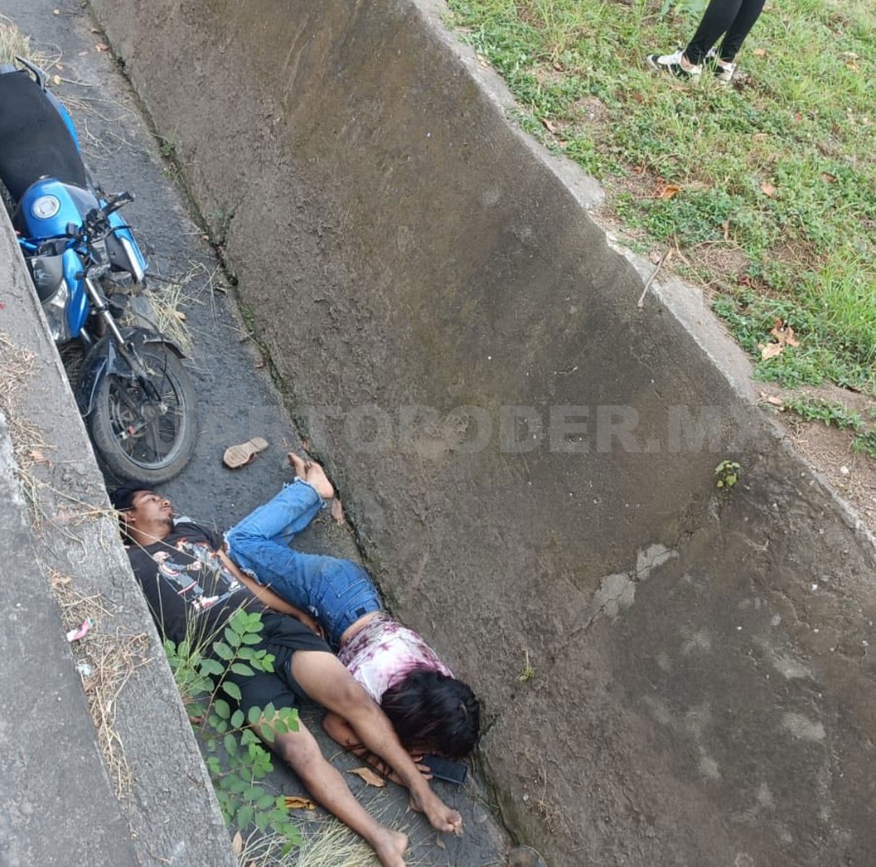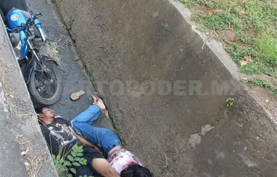 De acuerdo con el reporte, la pareja se desplazaba en una motocicleta Italika de color azul, cuando el conductor aparentemente por el exceso de velocidad no pudo controlar el manubrio, cruzó la banqueta y junto con su acompañante terminaron dentro del canal pluvial de más de un metro de profundidad.