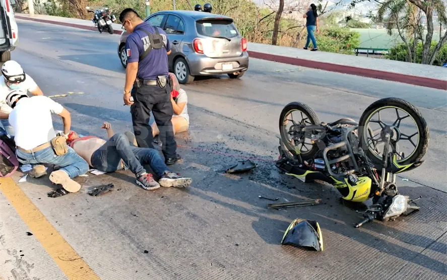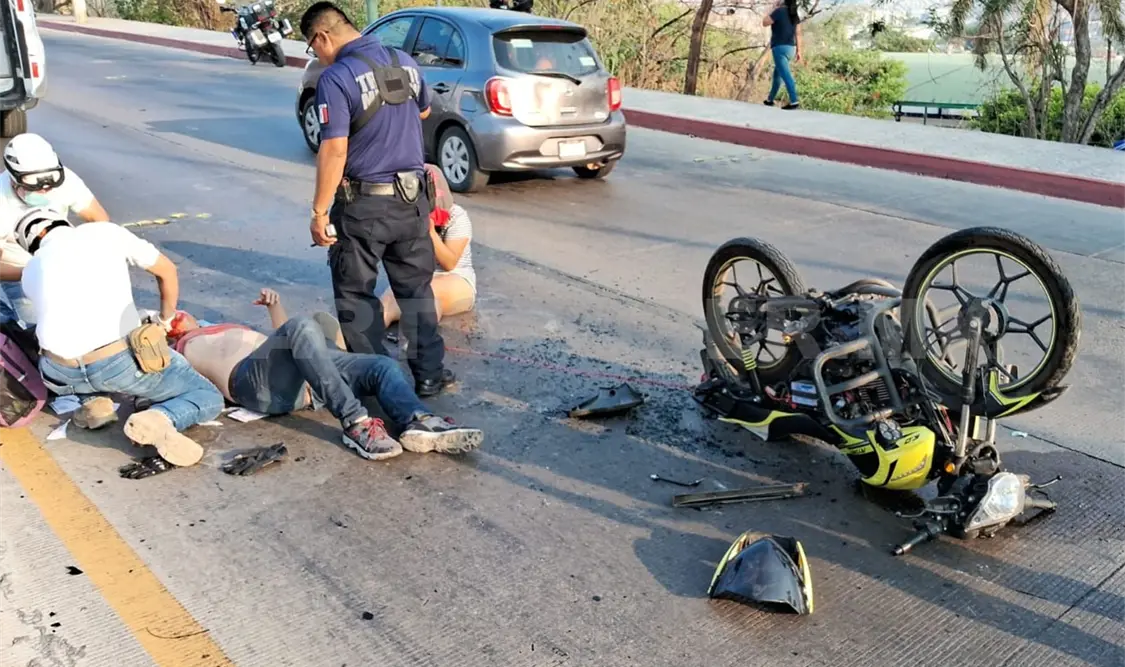 Una pareja a bordo de una motocicleta resultó gravemente herida durante un aparatoso accidente de tránsito suscitado sobre libramiento Sur, a la altura de la colonia Penipak, en la ciudad de Tuxtla Gutiérrez.