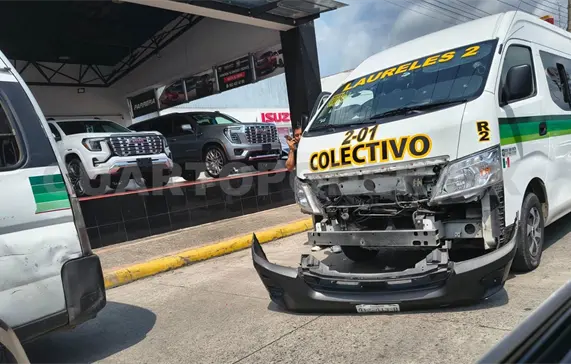Fue sobre la calle Central Oriente, a la altura de la 5.ª privada Sur en donde ocurrió el encontronazo entre dos vehículos Nissan Urvan de la ruta Laureles 2-Centro.