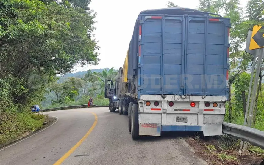 Lo anterior le ocurrió al chofer de un pesado tráiler cuando se desplazaba sobre la carretera federal Palenque-Ocosingo, y es que debido a ello, su unidad abandonó ligeramente la cinta asfáltica, pero por fortuna logró detener su marcha.