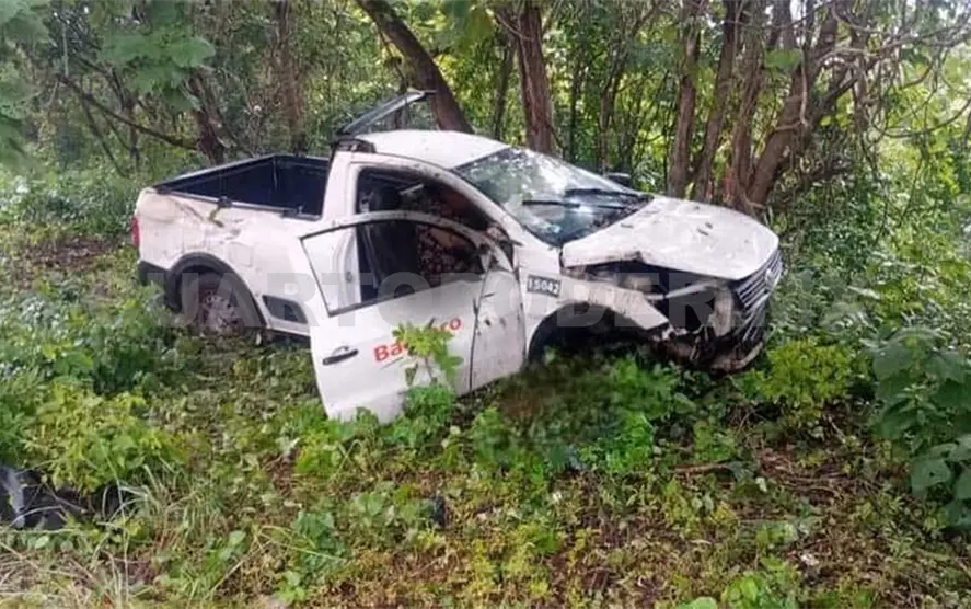 Esta, resultó dañada. La fémina mencionó que un vehículo la sacó de la carretera, dando varias vueltas y finalizando entre la maleza.