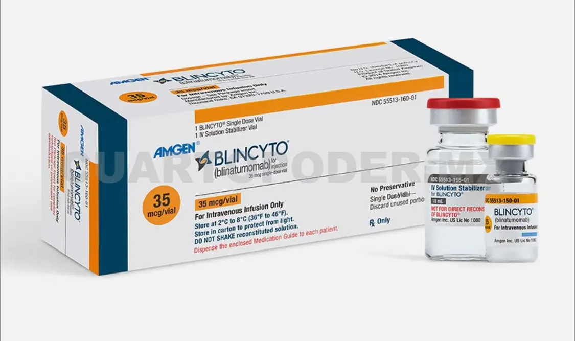 Se trata de la aplicación de un medicamento llamado blincyto, con el activo blinatumomab. Es un tratamiento utilizado para atacar directamente las células cancerígenas, relativamente reciente en México, que debido a su alto costo ningún hospital público lo suministra, únicamente se aplica en algunos hospitales privados del centro y norte del país.
