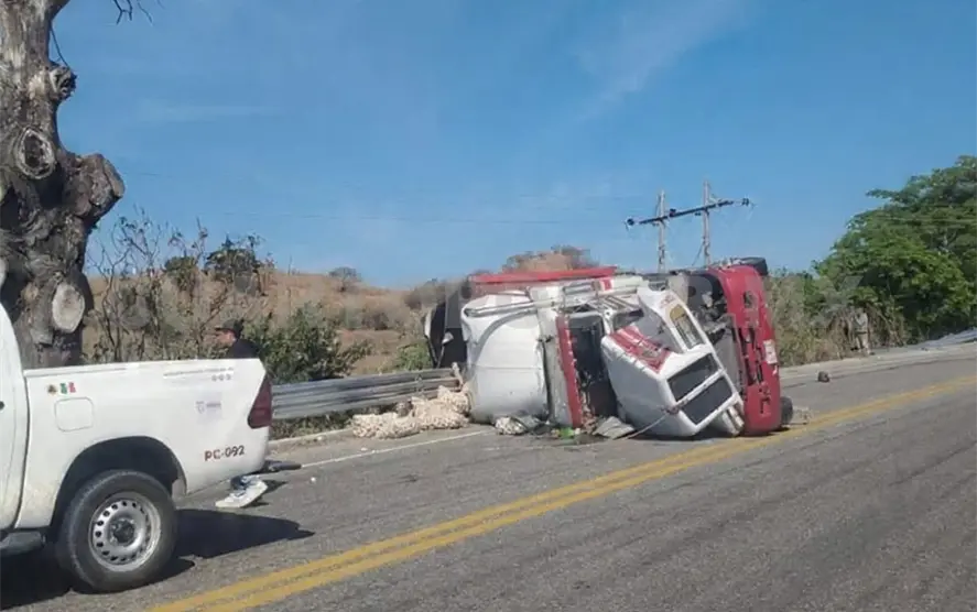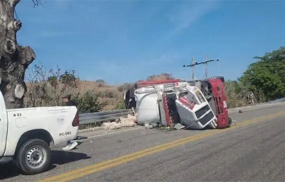 De acuerdo con los primeros informes, la pesada unidad perdió el control por causas que aún no han sido determinadas, lo que provocó que terminara recostada de lado fuera de la carpeta asfáltica.