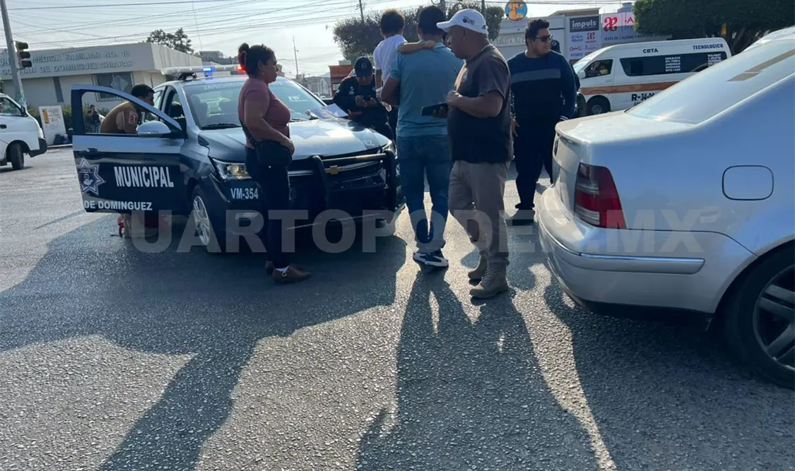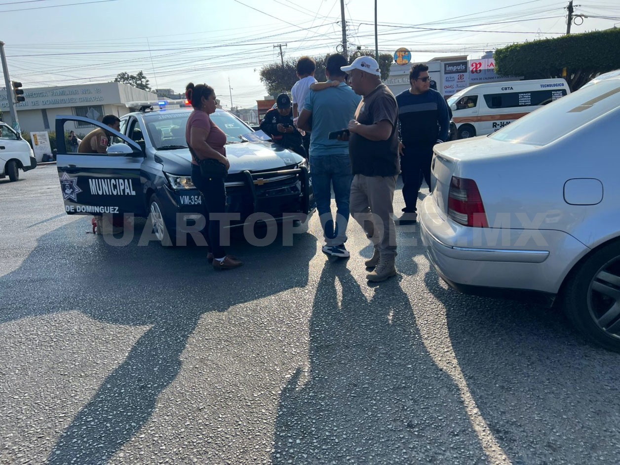 El vehículo oficial se estrelló en la parte lateral izquierda del Volkswagen Jetta, lo que dejó severos daños en las carrocerías y a una oficial policontundida. Por ello, una ambulancia con paramédicos de Protección Civil se presentó.