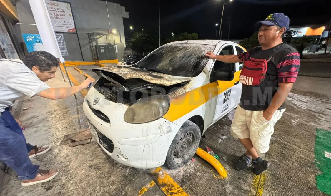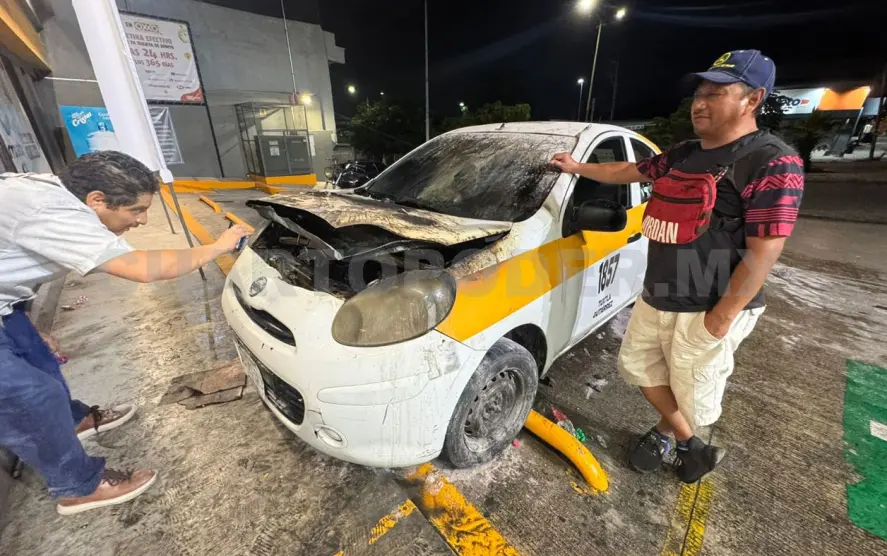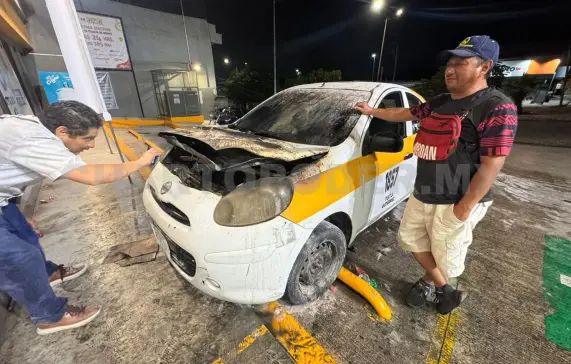 Un vehículo de la marca Nissan March, en modalidad de taxi con número económico 1857, se incendió en el estacionamiento de una tienda de autoservicio que está situada sobre la Calzada al Sumidero y la entrada a la colonia Kilómetro 4, en la ciudad de Tuxtla Gutiérrez.