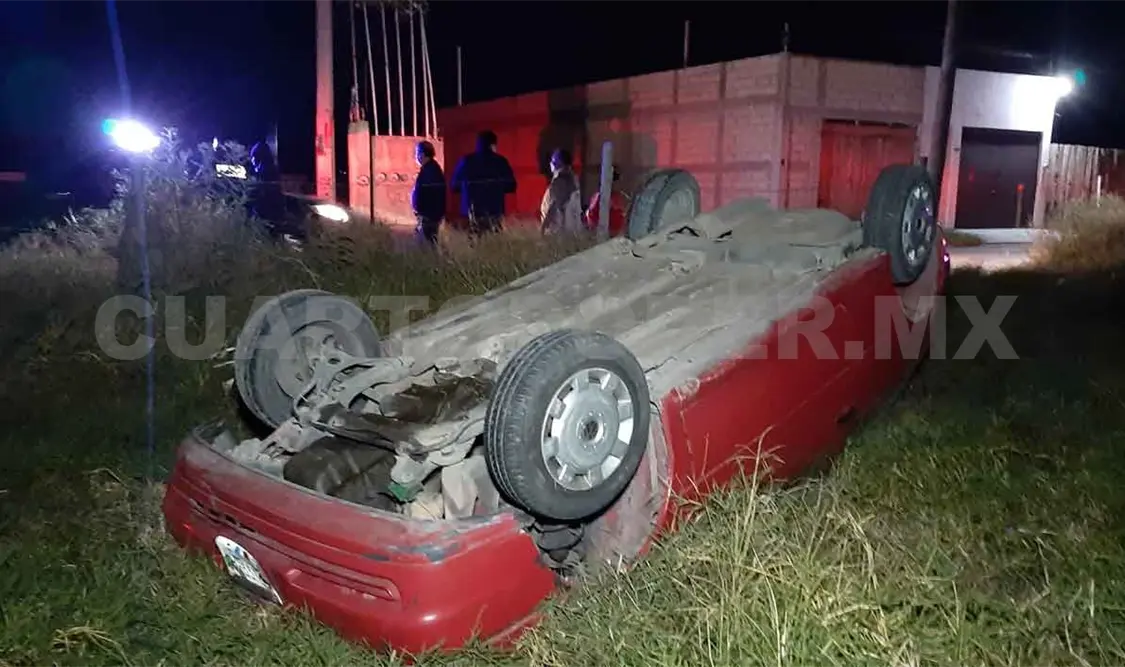 El automóvil quedó con las llantas hacia arriba entre los matorrales de un lote baldío.