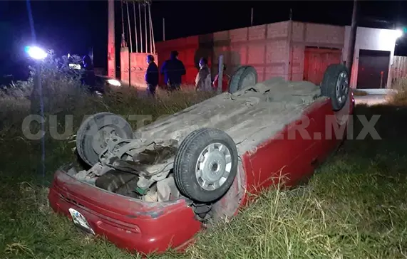 Un automovilista se accidentó en la noche de ayer al volcar y quedar con las llantas hacia arriba en un terreno baldío cuando su vehículo tuvo una falla mecánica; el conductor y una acompañante resultaron ilesos, en hechos ocurridos en la ciudad de Comitán.
