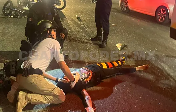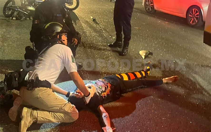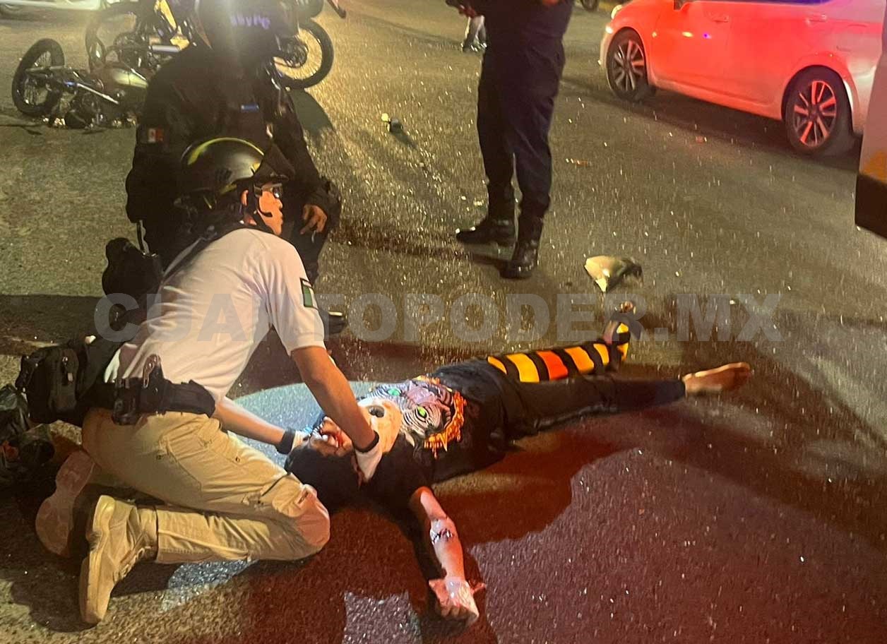Presuntamente el motorista huía de un elemento de la Policía Estatal Preventiva; sin embargo, al llegar a la avenida Palma Camedor un automóvil Nissan Sentra de color azul, manejado por Jesús “N” (24), lo embistió.