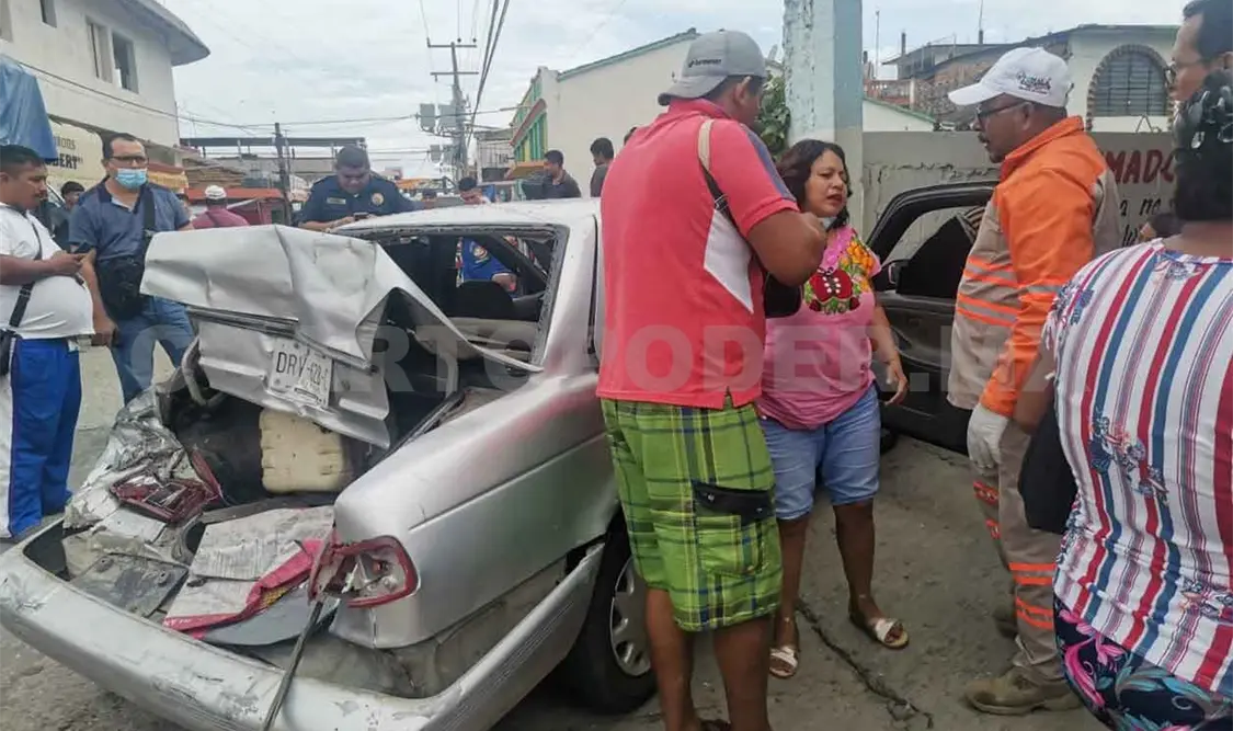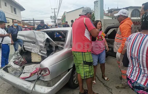 Testigos dijeron que el chofer del camión se quedó sin frenos a la altura de la iglesia católica San Francisco de Asís y cuadras más adelante se estrelló contra el automóvil.
