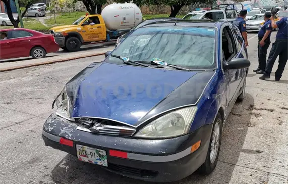 Elementos de Tránsito y Vialidad se presentaron al lugar a las 14:00 horas y encontraron un automóvil abandonado Ford tipo Focus color azul, con placas de circulación DSN-91-85 del estado de Chiapas.