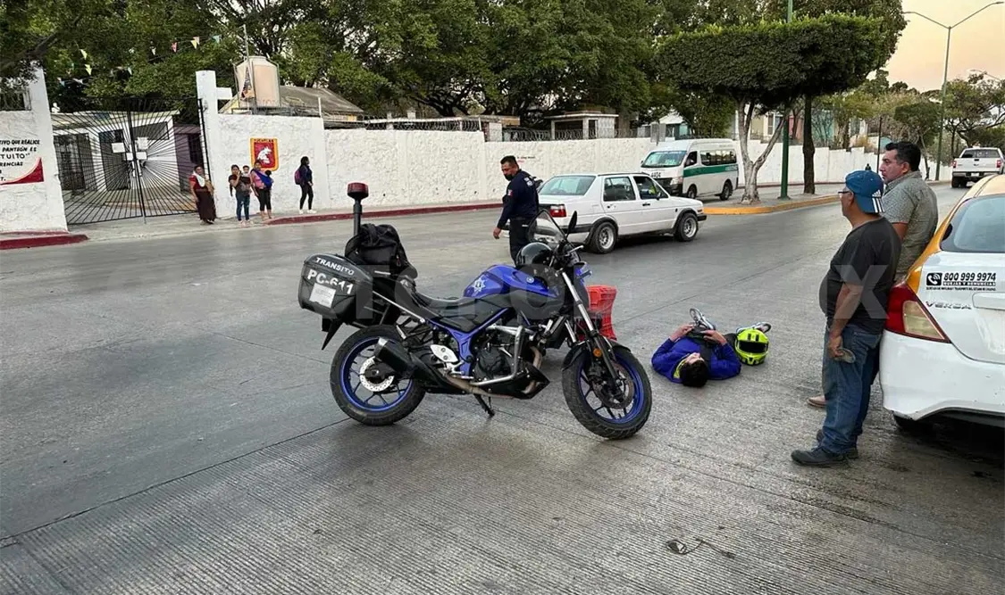 El impacto provocó que el motociclista sufriera una lesión en la pierna, dejándolo tendido en el pavimento durante varios minutos. A pesar de la gravedad del incidente, se informó que el joven permanecía consciente en todo momento.