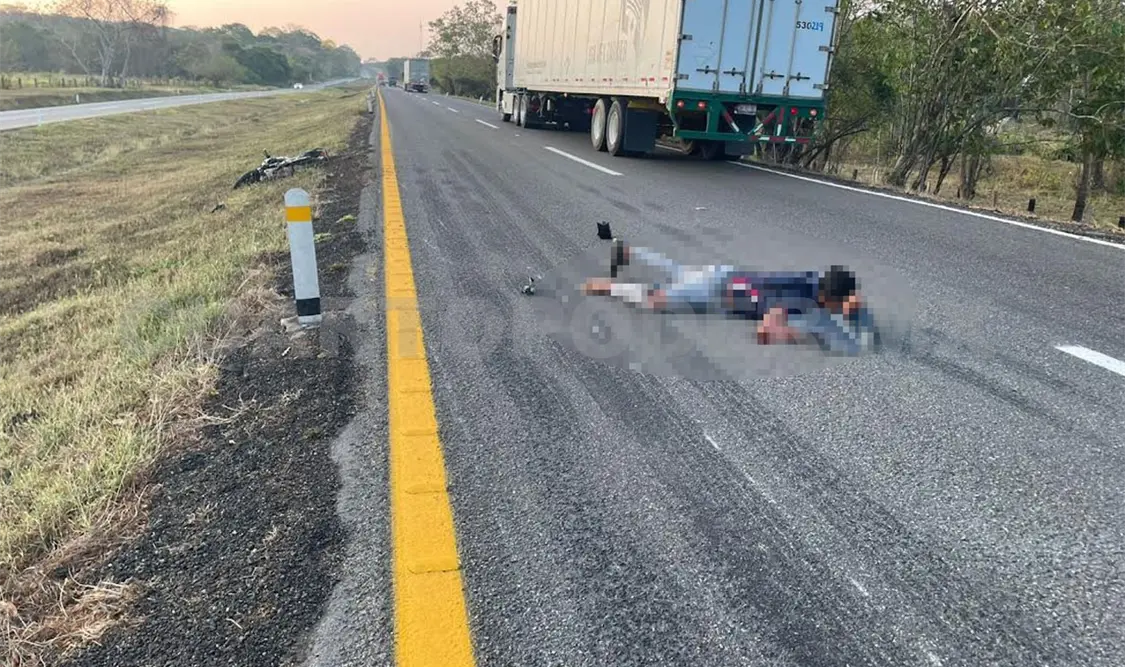 Este quedó tirado sobre la carpeta asfáltica, mientras que la unidad que manejaba a varios metros de distancia, aunque no se estableció si fue impactado por algún vehículo o derrapó.